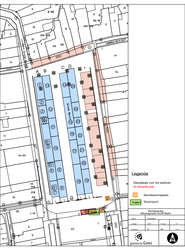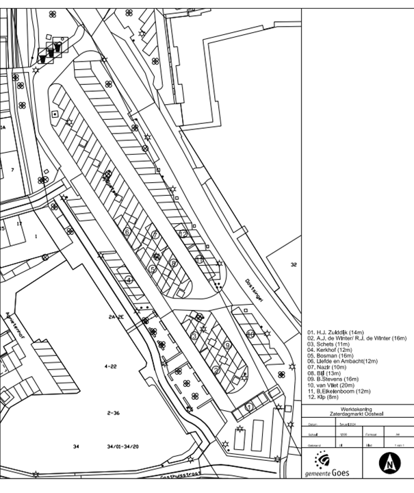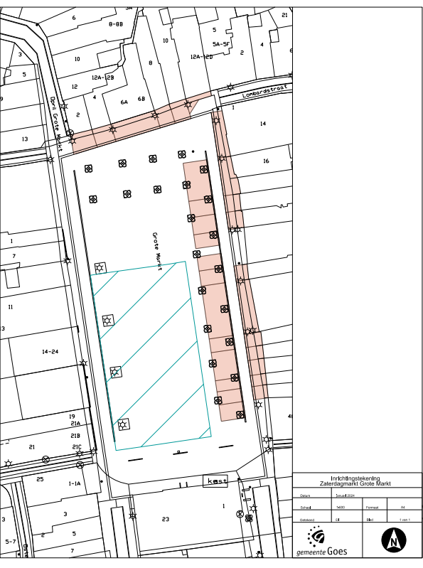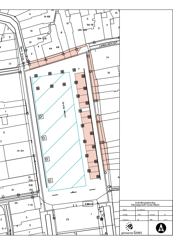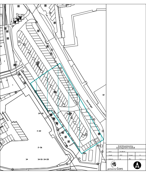 Het marktterrein, zoals weergegeven op de inrichtingstekeningen van de Marktverordening Goes 2025, is op marktdagen vanaf het tijdstip waarop ingevolge artikel 19 de standplaats bezet mag worden tot het tijdstip waarop ingevolge artikel 19 het afrijden van het marktterrein uiterlijk is toegestaan bestemd voor het houden van de markt.