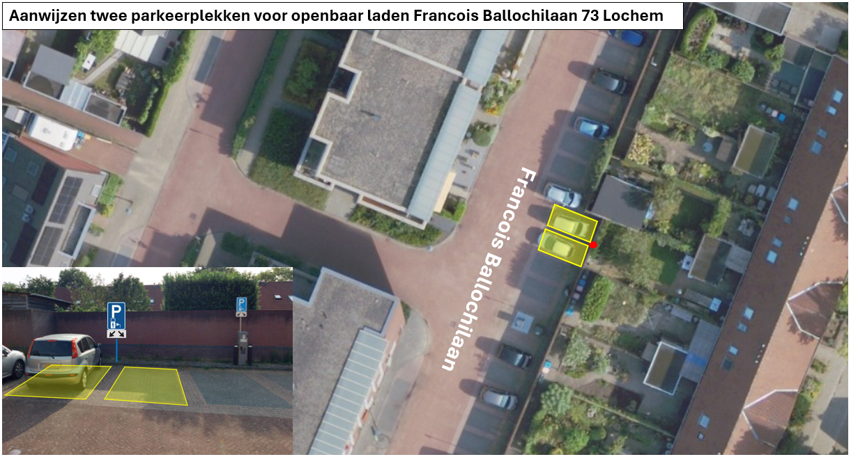 Verkeersbesluit aanwijzen openbare parkeerplaatsen ten behoeve van elektrisch laden Francois Ballochilaan 73 Lochem