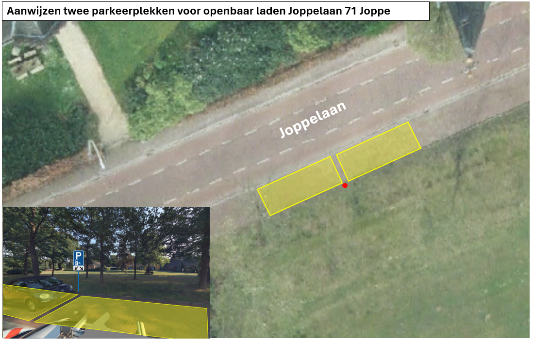 Verkeersbesluit aanwijzen openbare parkeerplaatsen ten behoeve van elektrisch rijden Joppelaan 71 Joppe