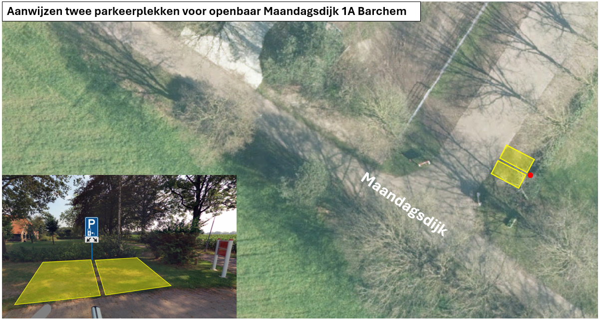 Twee parkeerplaatsen aan de Maandagsdijk in Barchem ter hoogte van nummer 1A.