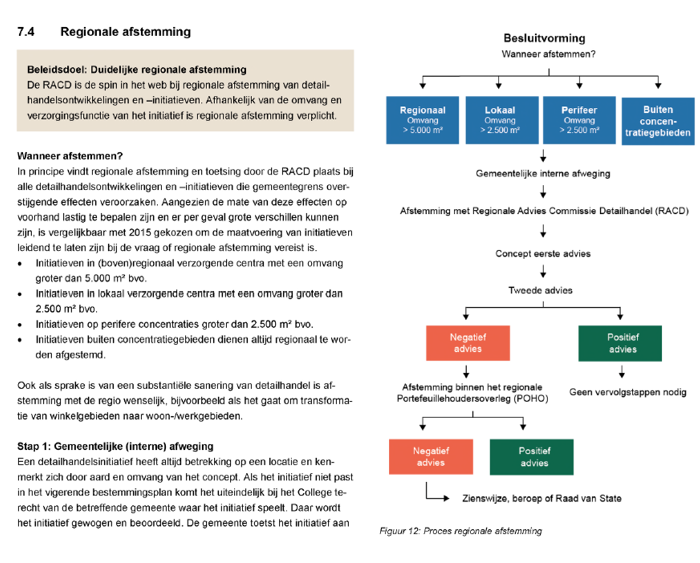 indien een initiatief of ontwikkeling niet kan worden gecategoriseerd onder a) tot en met c) maar er wel bovenlokale effecten te verwachten zijn en/of afgeweken wordt van de Regionale detailhandelsvisie Stedelijk Gebied Eindhoven 2023, dient deze ook ter advisering te worden voorgelegd aan de RACD. Dit gezien het belang dat de regio hecht aan een evenwichtige ontwikkeling van de regionale detailhandelsstructuur en een zorgvuldige afweging.