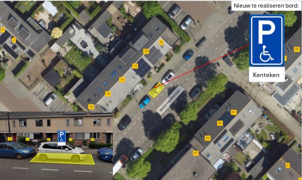 • Een parkeerplaats exclusief te reserveren ten behoeve van het parkeren en stallen van voertuigen van betrokkene aan de Bertus van Akenlaan 12;