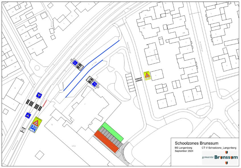 In de CROW-notitie (Schoolzones: toepassing en inrichting) zijn maatregelen opgenomen die toegepast kunnen worden binnen schoolzones. Deze notitie is leidend daarvoor. Voor onderhavig school Langenberg gelegen aan de Rembrandtstraat is gekozen voor: