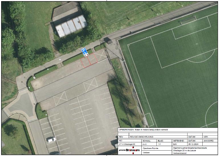 Verkeersbesluit tot het aanwijzen en inrichten van twee algemene gehandicaptenparkeerplaatsen nabij het parkeerterrein sportcomplex Olieslager 20.