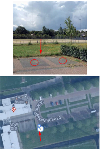 Aanwijzen van laadplaats voor elektrische voertuigen op de parkeerplaats nabij FC Assen aan de Hoogspanning