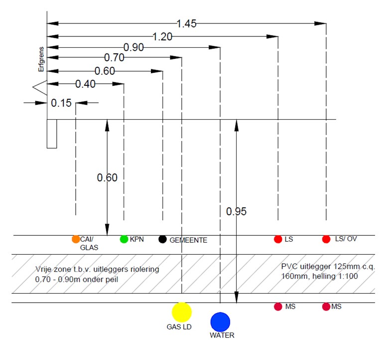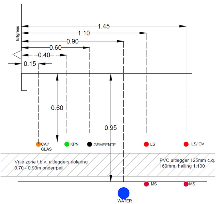 Een minimale gronddekking van 2,00 m ten opzichte van de aanwezige bodem, als de bodem lager ligt dan de ontwerpdiepte. Een en ander conform de eisen van het vigerende waterschap.
