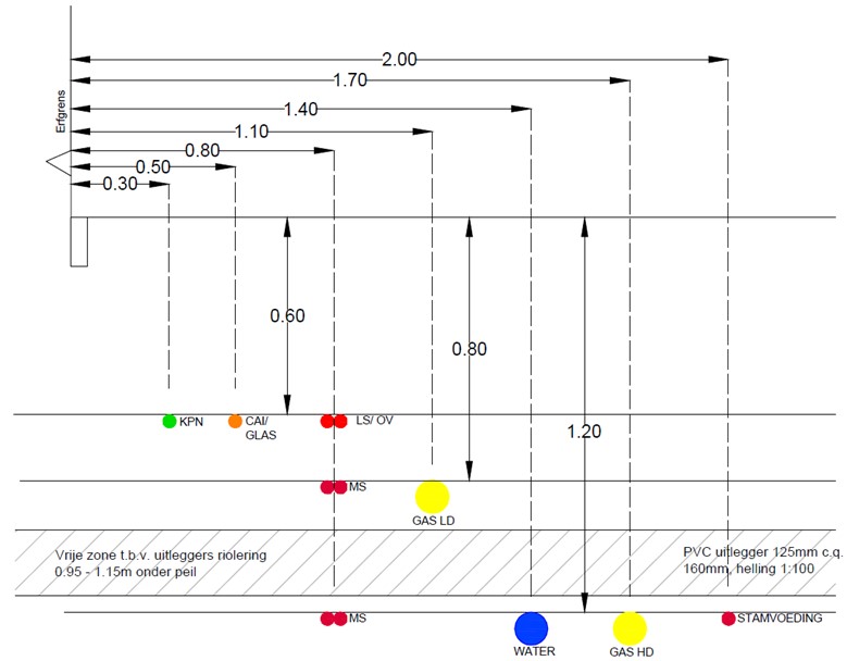 Bij de inrichting van de ondergrond moeten de belangen van diverse belanghebbenden en disciplines gewaarborgd worden. Een standaard dwarsprofiel is opgenomen in bijlage 10.2. Dit standaard dwarsprofiel is het uitgangspunt en wordt daar waar mogelijk toegepast. Als dit niet mogelijk is wordt door de gemeente en de netbeheerders in overleg een tracé en een dwarsprofiel opgesteld op basis van de uitgangspunten zoals bepaald in artikel 7.2.1 tot en met 7.2.3. Deze beknopte uitgangspunten zijn gebaseerd op de NEN 7171-1 en de NPR-7171. Als de uitgangspunten niet voldoen, dan wordt de volledige procedure van de NEN 7171-1 en NPR-7171 gevolgd.