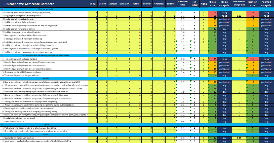De risicoscore is gecorrigeerd voor de mate waarin VTH-instrumenten effectief zijn om het risico te beheersen en de capaciteit die we kunnen inzetten. Dit leidt tot de prioriteiten.