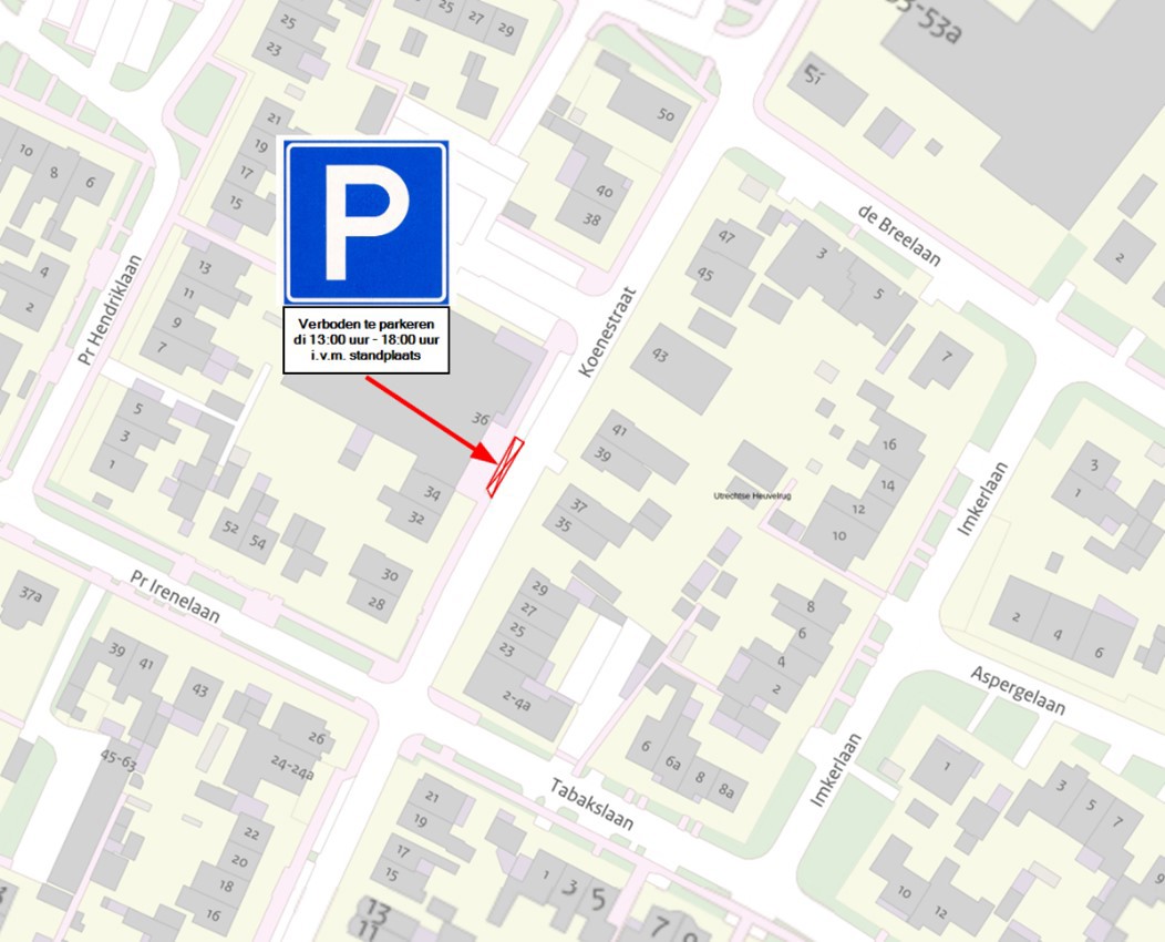 het vrijhouden van twee parkeerplaatsen t.b.v. een standplaatshouder, op dinsdagen tussen 13:00 uur - 18:00 uur, op de Koenestraat te Amerongen door middel van het plaatsen van verkeersbord E4 (parkeergelegenheid) uit bijlage I van het Reglement Verkeersregels en Verkeerstekens 1990 (RVV 1990) inclusief onderbord met de tekst “verboden te parkeren di 13:00 uur – 18:00 uur i.v.m. standplaats” zoals weergegeven in de bijgevoegde situatieschets;