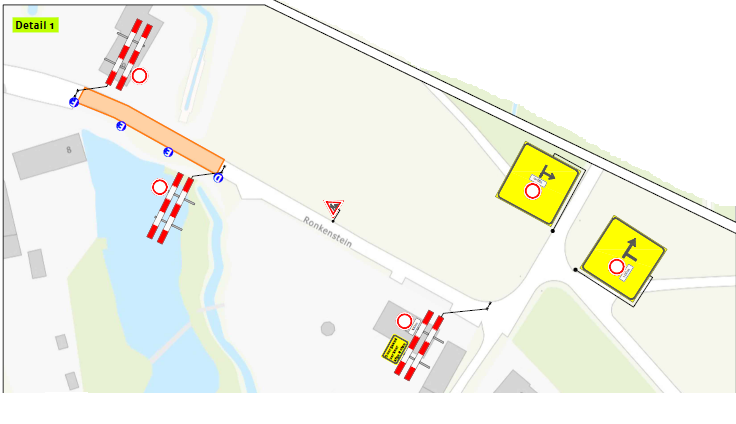 Situatietekening met door de gemeente goedgekeurde omleidingsroutes