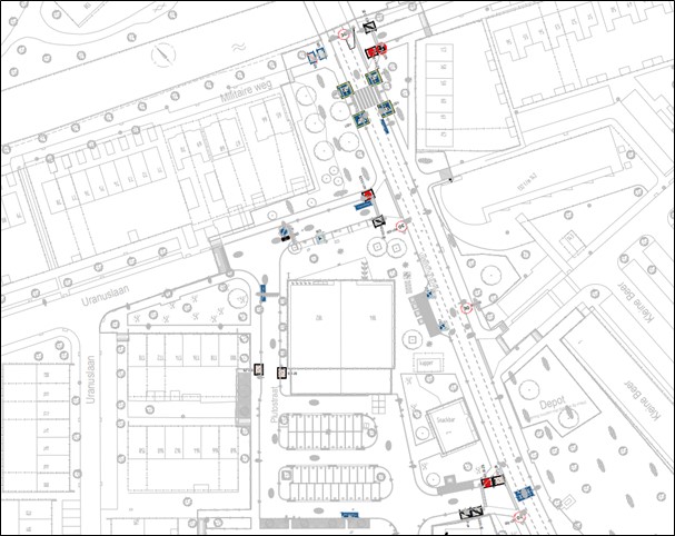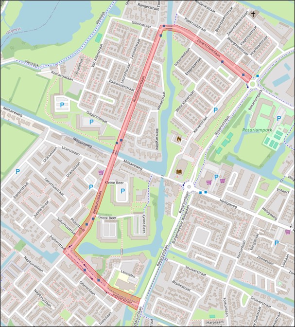 op de Neptunuslaan tussen de kruising met de Jupiterstraat en de kruising met de Militaireweg;