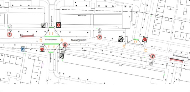 op de Zilverschoonlaan in oostelijke richting na het passeren van de kruising met de Zwanenbloemlaan;