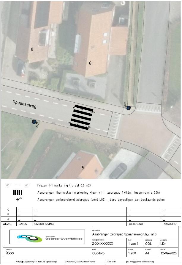 tot het instellen van een voetgangersoversteekplaats op de Spaanseweg nabij de kruising richting parkeerterrein ‘de Goudsmiene’ ter hoogte van huisnummer 6 te Ouddorp, door het plaatsen van de verkeersborden L02 conform model van bijlage I van het reglement verkeersregels en verkeerstekens 1990 en het aanbrengen van markeringen in de vorm van strepen conform de publicatie 207 Richtlijnen voor de Bebakening en Markering van wegen van het CROW;