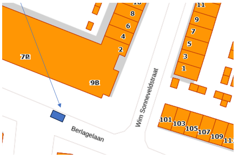 Het aanwijzen van een gehandicaptenparkeerplaats op kenteken tegenover de entree van de Berlagelaan 9A-9M door het plaatsen van een bord model E6 (RVV 1990 bijlage 1) voorzien van een onderbord met daarop het kenteken van het voertuig dat in gebruik is bij/ten behoeve van de aanvrager.