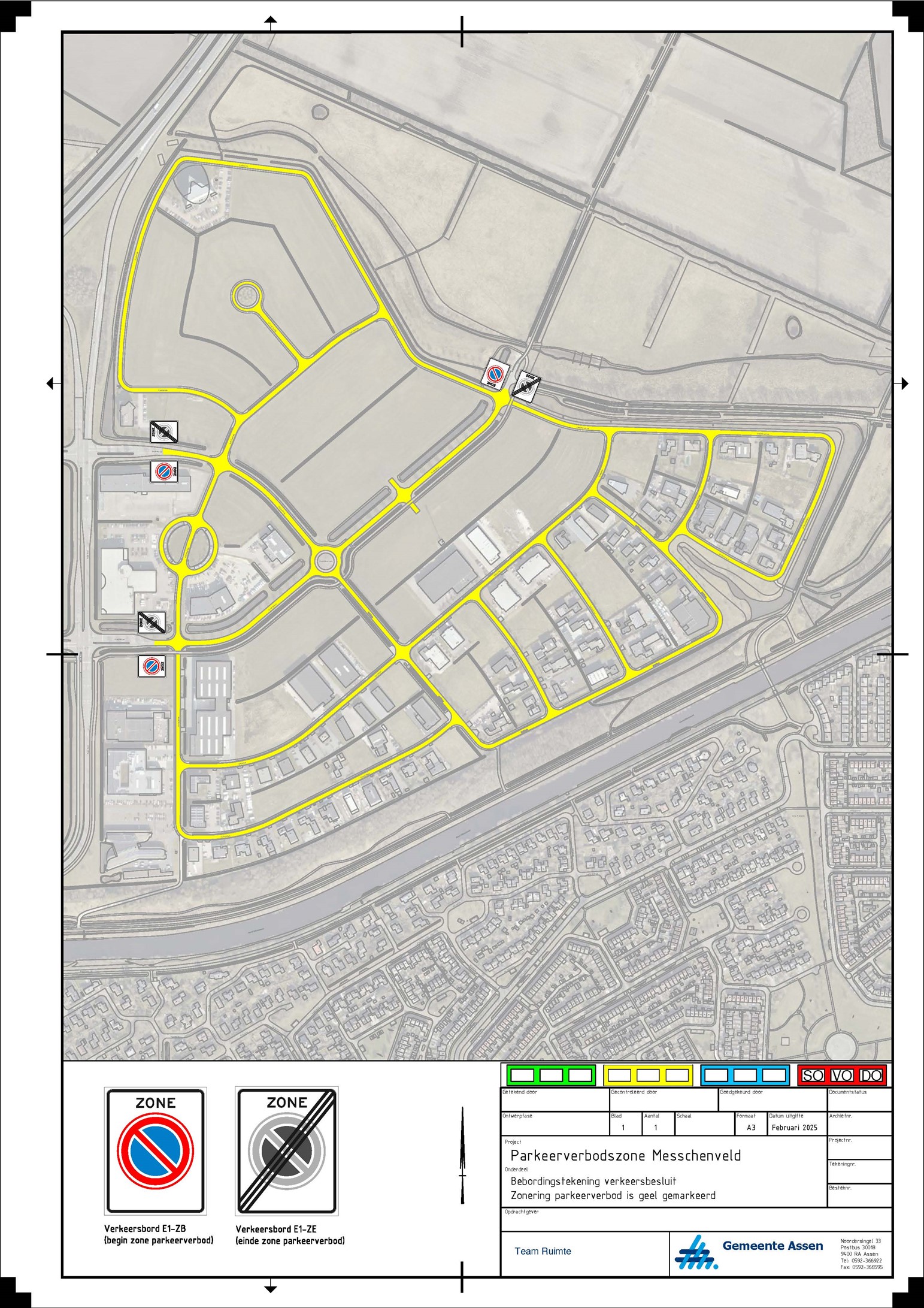 Het instellen van een parkeerverbodszone overeenkomstig op de bij dit besluit behorende situatieschets getiteld ‘’Parkeerverbod Messchenveld bebordingstekening_def-A3’’ door het plaatsen van de borden E1-ZB (zone parkeerverbod) en E1-ZE (einde zone parkeerverbod) uit bijlage 1 van het RVV 1990 op de volgende locaties: