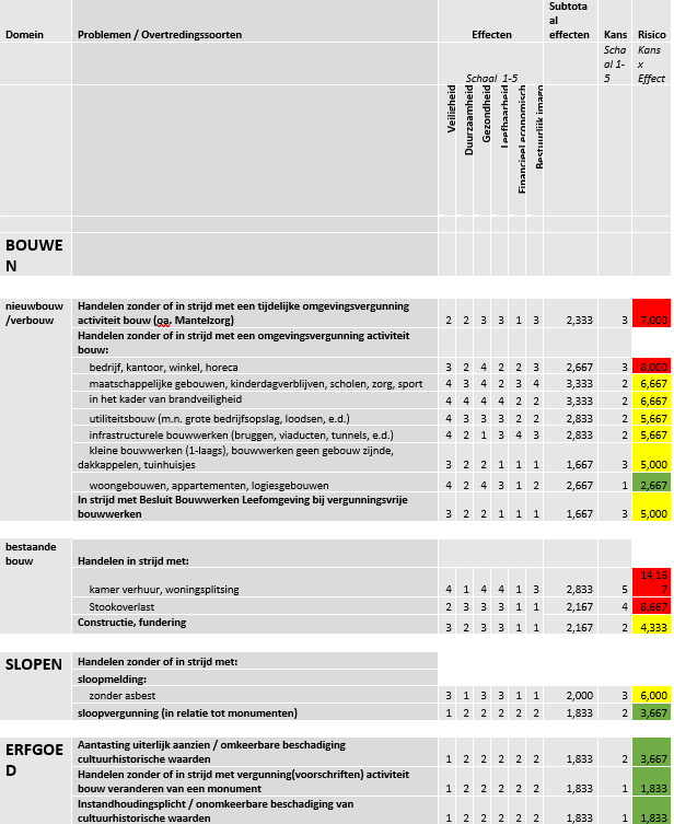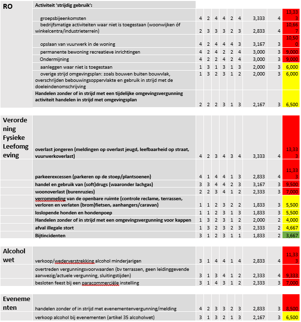 Bij een probleemanalyse vergunningen, toezicht en handhaving is het gebruikelijk om op basis van de gegevens van de voorafgaande jaren te analyseren. We houden de gegevens nauwkeurig bij met behulp van kengetallen die wij indien nodig aanpassen. De probleemanalyse dient tenminste 1 maal per 4 jaar te worden opgesteld en bestuurlijk vastgesteld en de risicoanalyse dient 1 maal per jaar te worden geactualiseerd op basis van monitoringsgegevens over naleefgedrag.