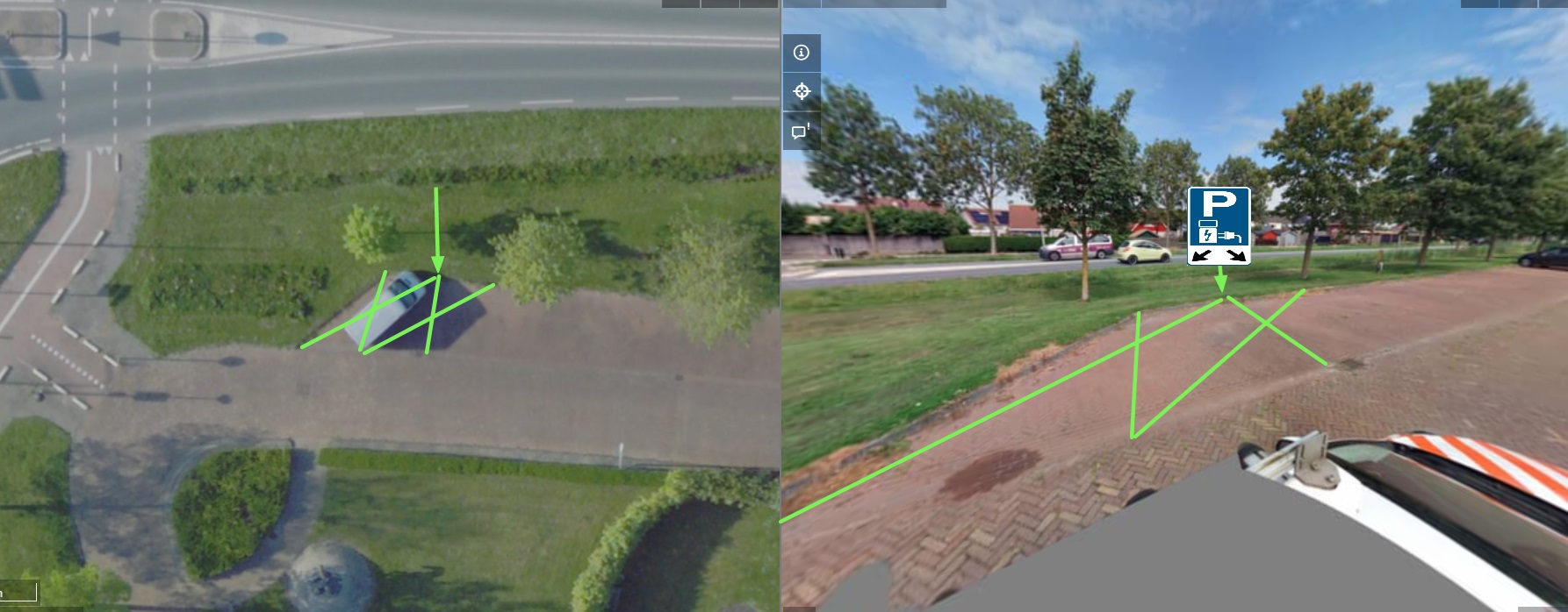 De laadpaal wordt geplaatst in het midden tussen twee parkeerplaatsen. Bij het kiezen van een nieuwe oplaadlocatie dient rekening gehouden te worden met de volgende criteria:
