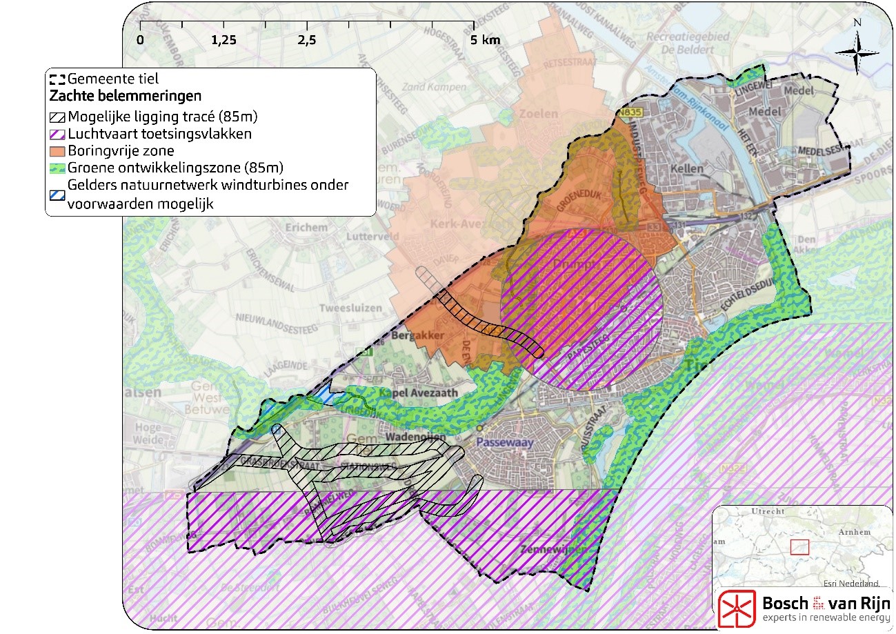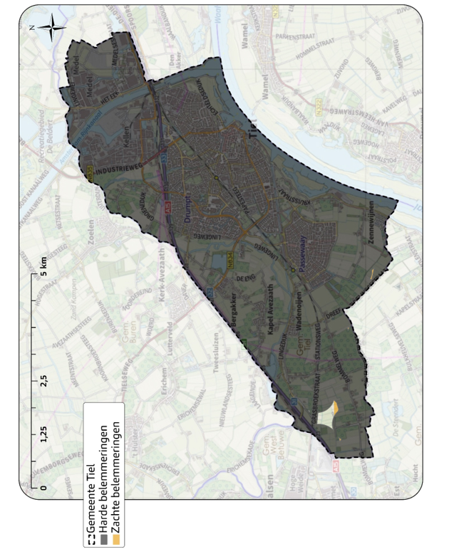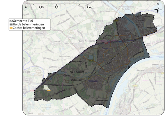 Figuur 8 Zachte belemmeringen voor grootschalige windenergie gemeente Tiel.