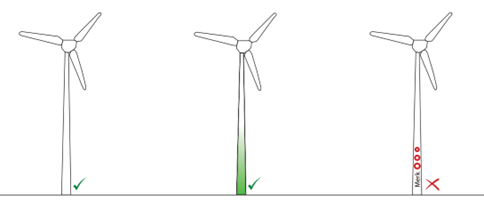 Windmolens hebben een egale ingetogen kleurstelling. Harde kleuraccenten (zoals rode banen) en grote merknamen niet zijn toegestaan (Figuur 3).