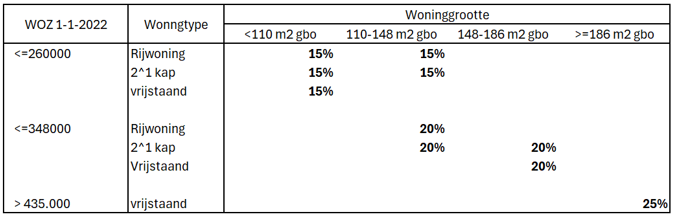Rekening houdende met voorgaande overwegingen is de totale portefeuille van bestaande woningen op erfpacht ingedeeld. Twee in één bouwblok geschakelde woningen zijn daarbij als 2^1 kap woning ingedeeld. Rijwoningen omvatten zowel tussen- als hoek- of eindwoningen.