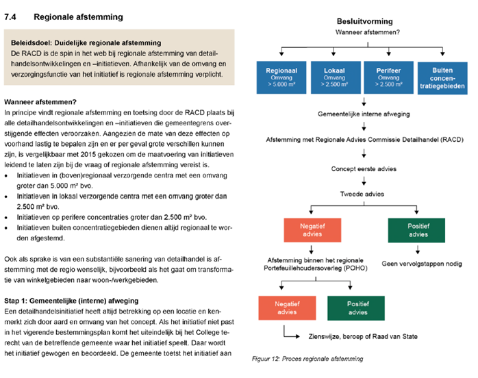 indien een initiatief of ontwikkeling niet kan worden gecategoriseerd onder a) tot en met c) maar er wel bovenlokale effecten te verwachten zijn en/of afgeweken wordt van de Regionale detailhandelsvisie Stedelijk Gebied Eindhoven 2023, dient deze ook ter advisering te worden voorgelegd aan de RACD. Dit gezien het belang dat de regio hecht aan een evenwichtige ontwikkeling van de regionale detailhandelsstructuur en een zorgvuldige afweging.