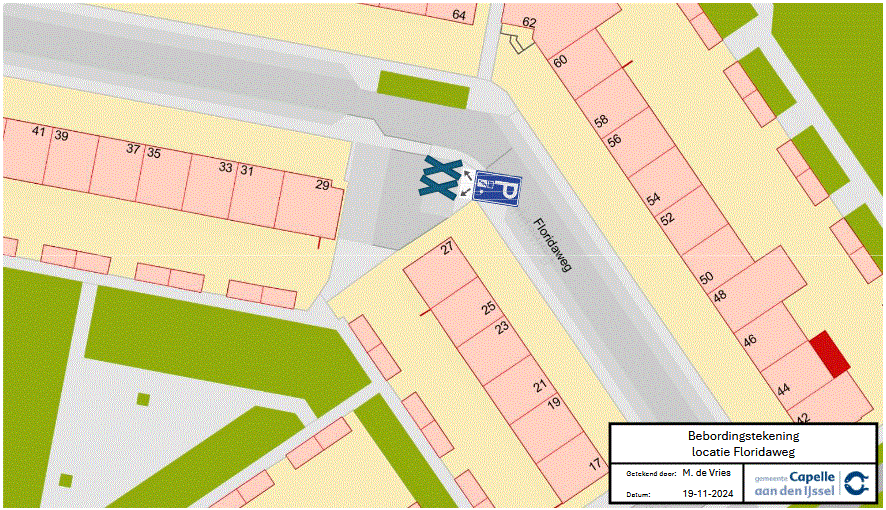 Bebordingstekening Floridaweg ter hoogte van huisnummer 27