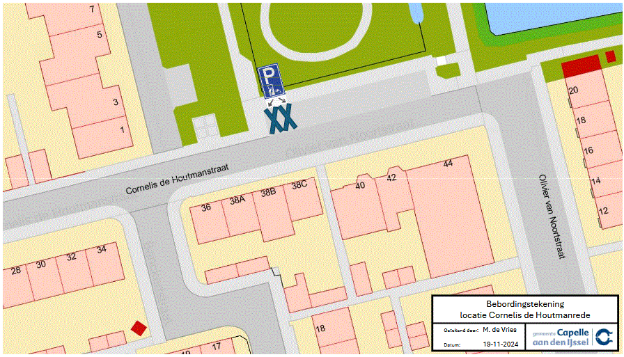 Bebordingstekening Cornelis de Houtmanrede ter hoogte van huisnummer 38c