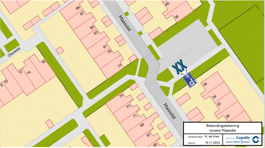 Bebordingstekening Maasdal ter hoogte van huisnummer 36