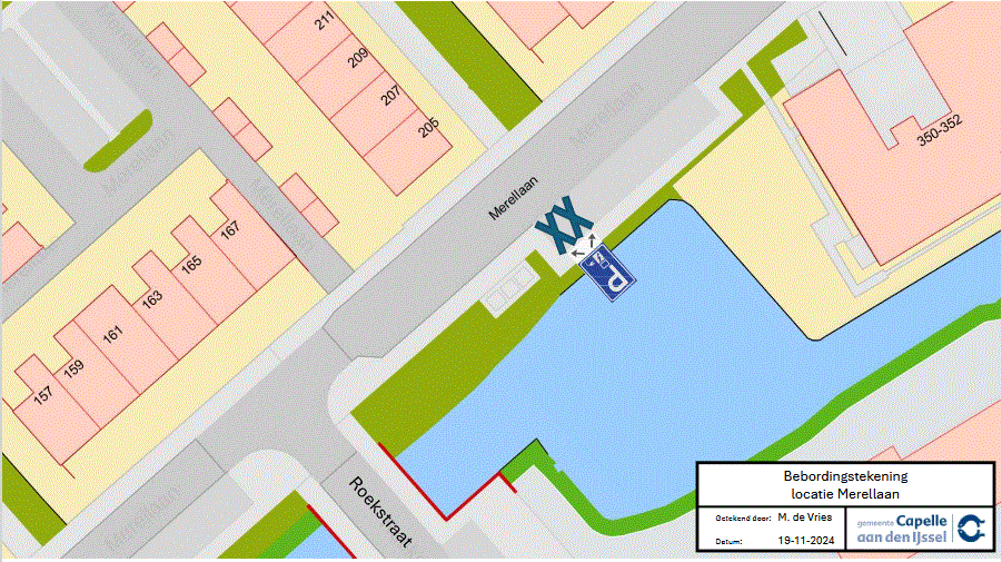 Bebordingstekening Merellaan ter hoogte van huisnummer 205