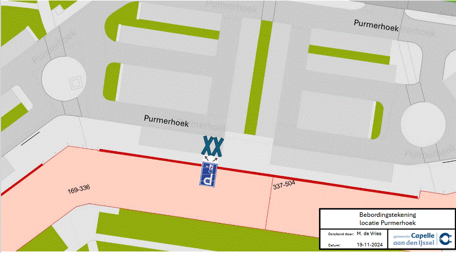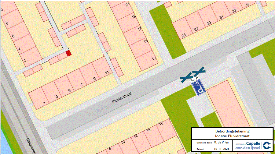 Bebordingstekening Pluvierstraat ter hoogte van huisnummer 25