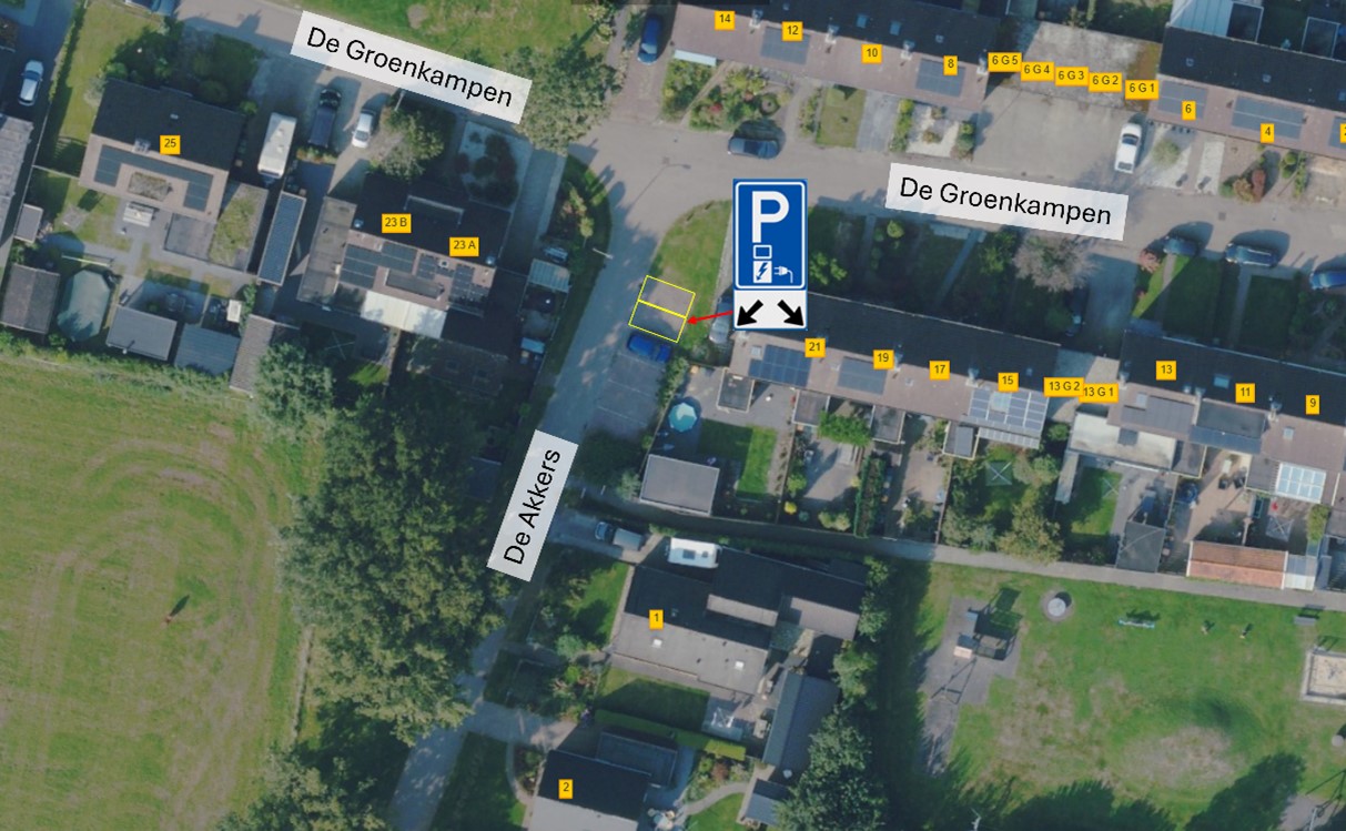 Verkeersbesluit reserveren parkeerplaatsen t.b.v. opladen elektrische voertuigen aan De Akkers t.h.v. De Groenkampen 21 te Hooghalen