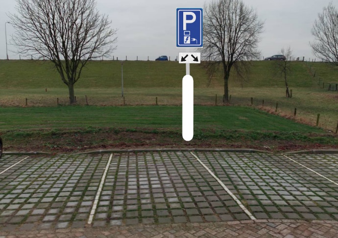 dat dit gerealiseerd kan worden door middel van het plaatsen van het verkeersbord E8c van bijlage 1 van het RVV 1990 met een onderbord dat aanduidt dat het verkeersbord van toepassing is op twee parkeervakken;