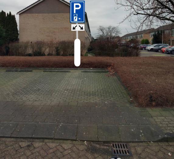 dat dit gerealiseerd kan worden door middel van het plaatsen van het verkeersbord E8c van bijlage 1 van het RVV 1990 met een onderbord dat aanduidt dat het verkeersbord van toepassing is op twee parkeervakken;