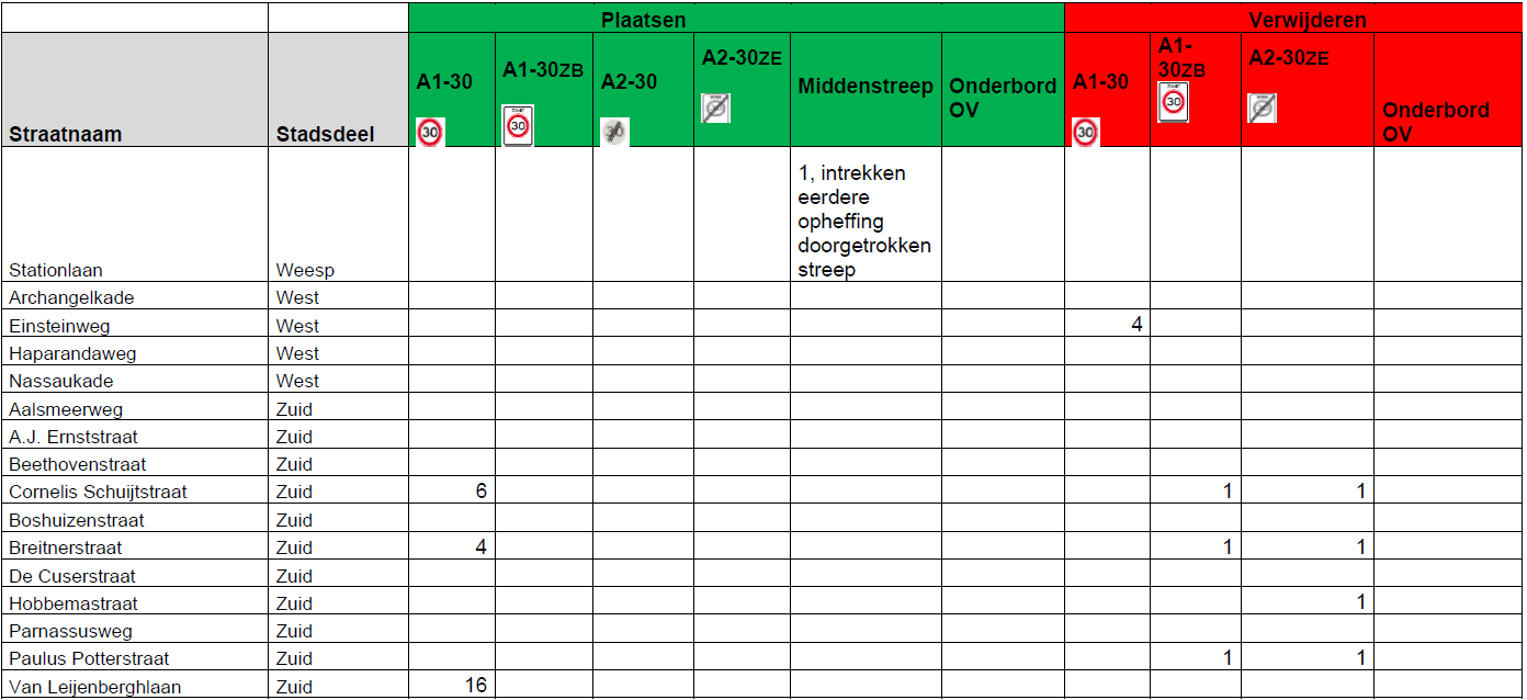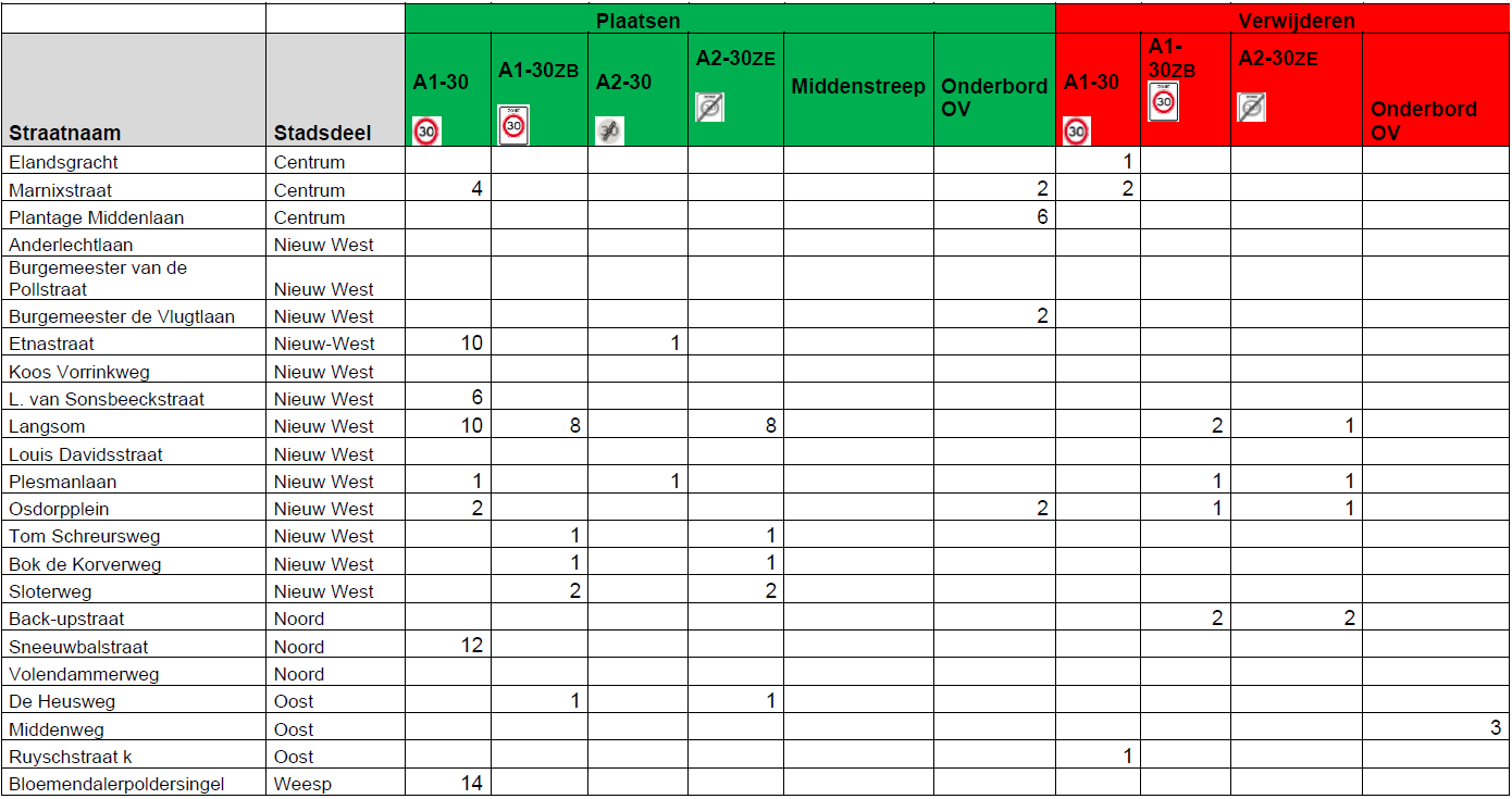 Het plaatsen van verkeersborden conform model A1-30 volgens Bijlage I, van het Reglement Verkeersregels en Verkeerstekens 1990 in de straten zoals genoemd in figuur 1, al dan niet voorzien van het onderbord “muv. gebruikers OV-baan” als bedoeld als bedoeld in artikel 67 het Reglement verkeersregels en verkeerstekens 1990.