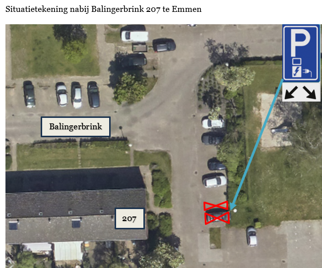 Gemeente Emmen – Verkeersbesluit laadplaats voor elektrische voertuigen nabij Balingerbrink 207 te Emmen.