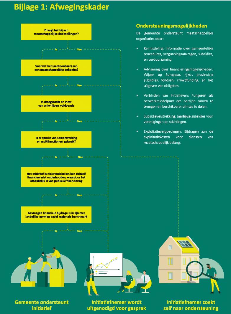 Deze aanpak biedt ruimte voor lokale initiatieven en maatschappelijke activiteiten, waarbij we streven naar betaalbare toegang tot voorzieningen zonder financiële drempels. Elk gemeenschapshuis wordt aangemoedigd om jaarlijks te rapporteren over bereikte doelstellingen en bestedingen, terwijl de sport- en jeugdaccommodaties hun exploitatie zelfstandig dienen te regelen binnen de kaders van hun huurovereenkomsten.