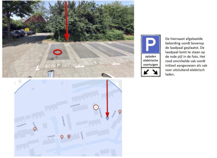 een dergelijke laadpaal onder meer gerealiseerd kan worden door de inrichting van de parkeerplaatsen bij de Koekamp ter hoogte van nummer 77;
