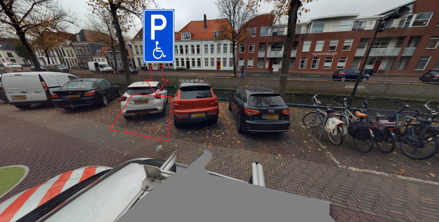 - nabij Burgwal 45-231 in Kampen één openbare parkeerplaats aan te wijzen als gehandicaptenparkeerplaats op kenteken door het plaatsen van een verkeersbord conform het model E6 van bijlage 1 RVV 1990 inclusief onderbord met het kenteken van het voertuig;