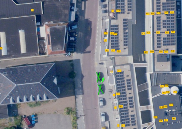 ter aanduiding hiervan verkeersbord E8c, zoals opgenomen in bijlage I van het Reglement verkeersregels en verkeerstekens 1990, te plaatsen in combinatie met onderbord OB504 met twee pijlen die de betreffende parkeervakken aanduiden;
