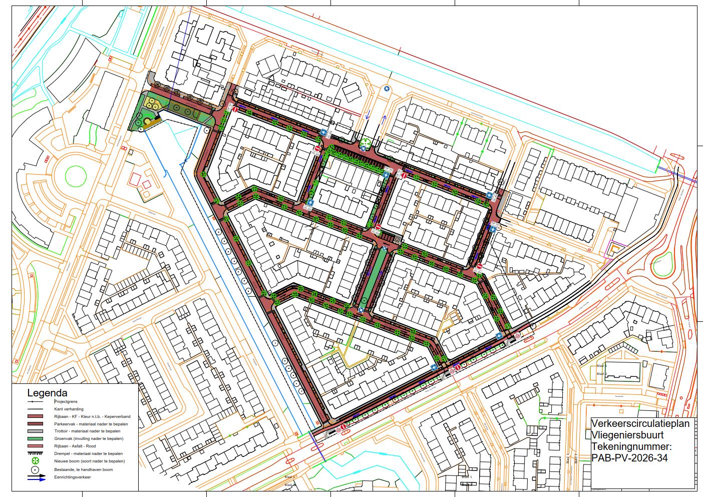 De Vliegeniersbuurt is een buurt met relatief krappe wegen. Om de verkeersveiligheid te waarborgen en de doorstroom te verbeteren worden een aantal wegen ingericht als eenrichtingsverkeer. De zuidkant van de wijk is op dit moment al voorzien van eenrichtingsverkeer dit wordt doorgetrokken naar de noordkant van de wijk. Dit eenrichtingsverkeer geldt niet voor fietsers, behalve op de parallelweg van de Keizer Karelweg. Hiervoor is gekozen omdat deze weg aansluit op de rotonde, dit eenrichtingsverkeer zorgt ervoor dat de juiste rijrichting daar wordt gehandhaafd voor de fietsers. Dit circulatieplan is opgesteld in samenspraak met bewoners en met de afvalophaaldienst. De afvalophaaldienst heeft bevestigd dat het in dit circulatieplan mogelijk is om al het afval op te halen.