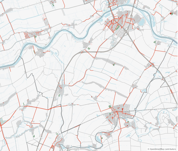 Figuur 10: Gemeente Vijfheerenlanden met vrijliggende fietspaden in rood