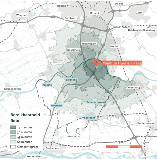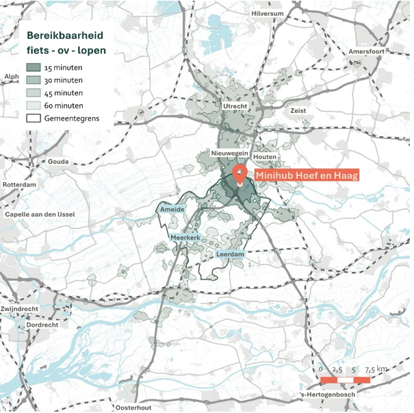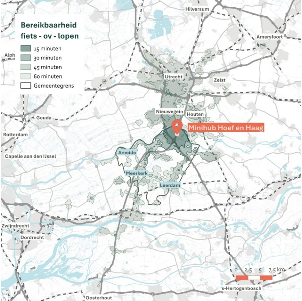 Figuur 12: Bereikbaarheid fiets-ov-lopen vanaf Minihub Hoef en Haag