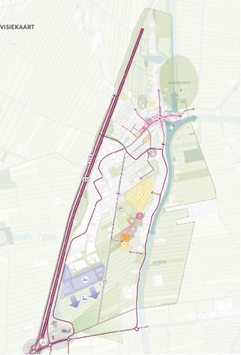 Binnen het gebiedsplan worden groene inprikkers opgenomen: routes die specifiek bedoeld zijn voor langzaam verkeer, zoals fietsers en voetgangers. Deze sluiten aan op de bestaande infrastructuur in de kern van Lexmond en zorgen voor een directe en aantrekkelijke verbinding tussen Lexmond-West en de voorzieningen in het centrum (zie figuur 20). Doorgaand gemotoriseerd verkeer wordt omgeleid via de randweg, waardoor de dorpskern rustiger en veiliger wordt.