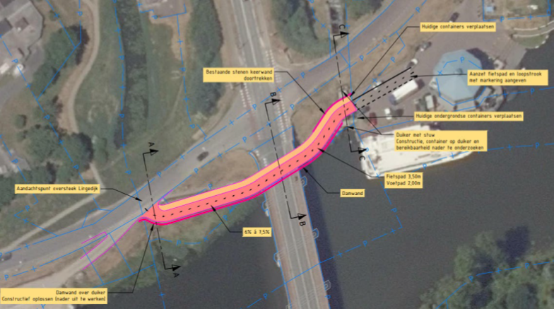 4a.Wij stellen voor de onderdoorgang voor langzaam verkeer nu te realiseren zodat deze in de toekomst gekoppeld kan worden aan de vervanging van de Lingebrug.