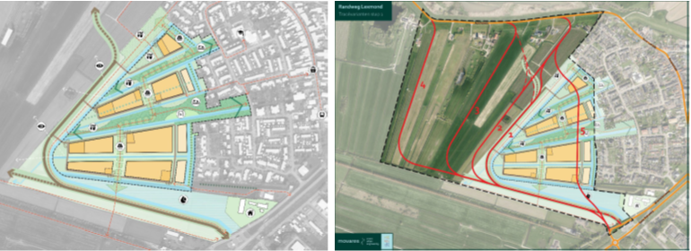 Figuur 23: Gebiedsplan Lexmond-West en tracévarianten voor de randweg