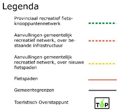 Het recreatief regionaal fietsnetwerk sluit aan op het provinciaal fietsknooppuntennetwerk (beheerd door het Routebureau Utrecht). Om het bereik van het netwerk te vergroten zijn enkele verbindingen hieraan toegevoegd. Uitgangspunt is dat het rustige, aantrekkelijke verbindingen zijn die aansluiten op de Toeristische Overstappunten en vanuit elke kern is de omgeving te verkennen. Twee nieuwe, mogelijke toekomstige verbindingen vullen het netwerk aan: