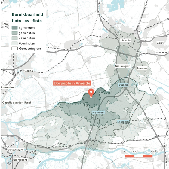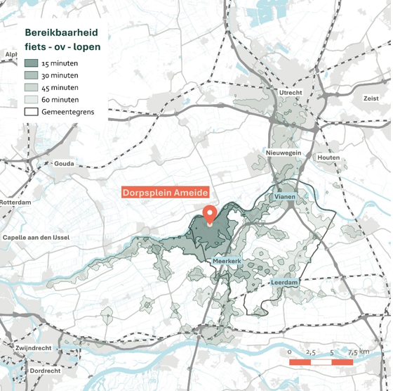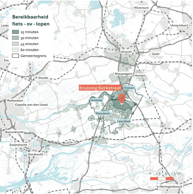 Figuur 29: Bereikbaarheid fiets-ov-lopen Ameide