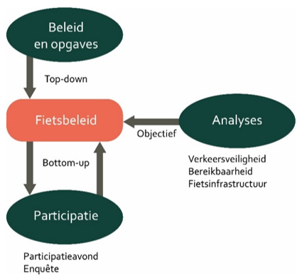 Het fietsbeleid is van drie kanten tot stand gekomen: bovenliggend beleid, participatie en analyses.