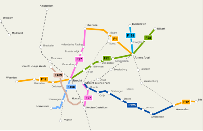 Het utilitair fietsnetwerk is opgenomen in Bijlage B. Hierin wordt toegelicht hoe het netwerk tot stand is gekomen en welke verbindingen van belang zijn voor dagelijkse fietsverplaatsingen, zoals woon-werkverkeer en schoolroutes. Daarnaast is het recreatief regionaal fietsnetwerk opgenomen in Bijlage C. Langs deze routes worden voorzieningen ontwikkeld die gericht zijn op recreatieve fietsers, zoals bankjes en informatiepanelen. Wij werken hierbij samen met het Routebureau Utrecht. Zij beheren het fietsknooppuntennetwerk en hebben veel kennis van de recreatieve fietser.