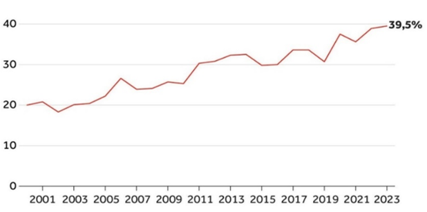 Figuur 7: Percentuele toename fietsdoden ten opzichte van het totaal aantal verkeersslachtoffers 8